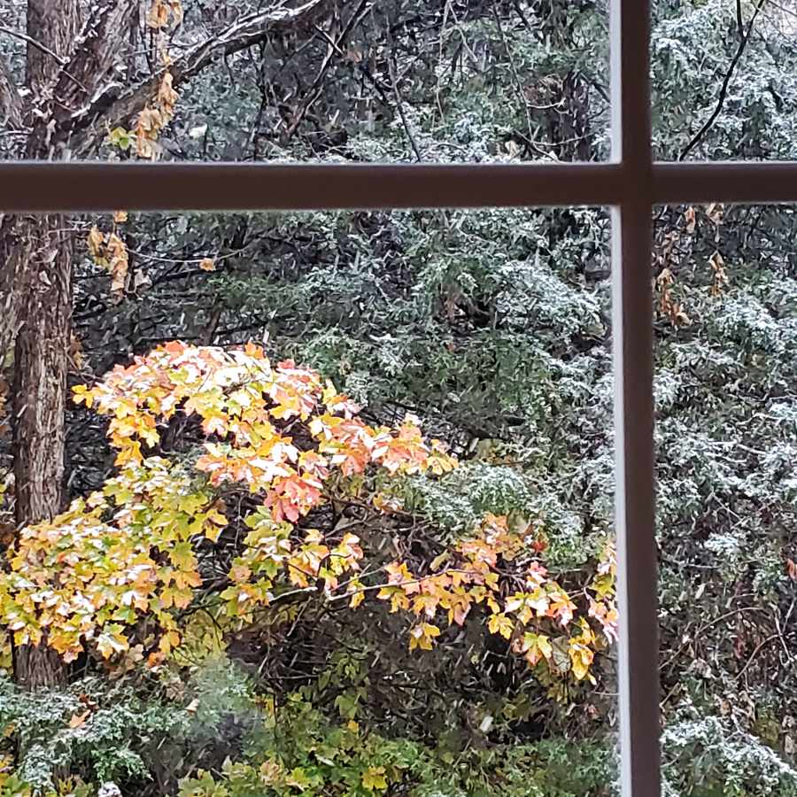 Attempt to shoot early fall snow shower through window