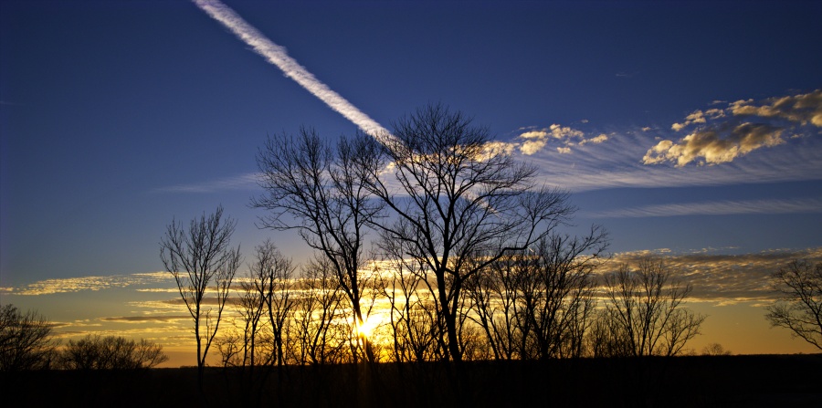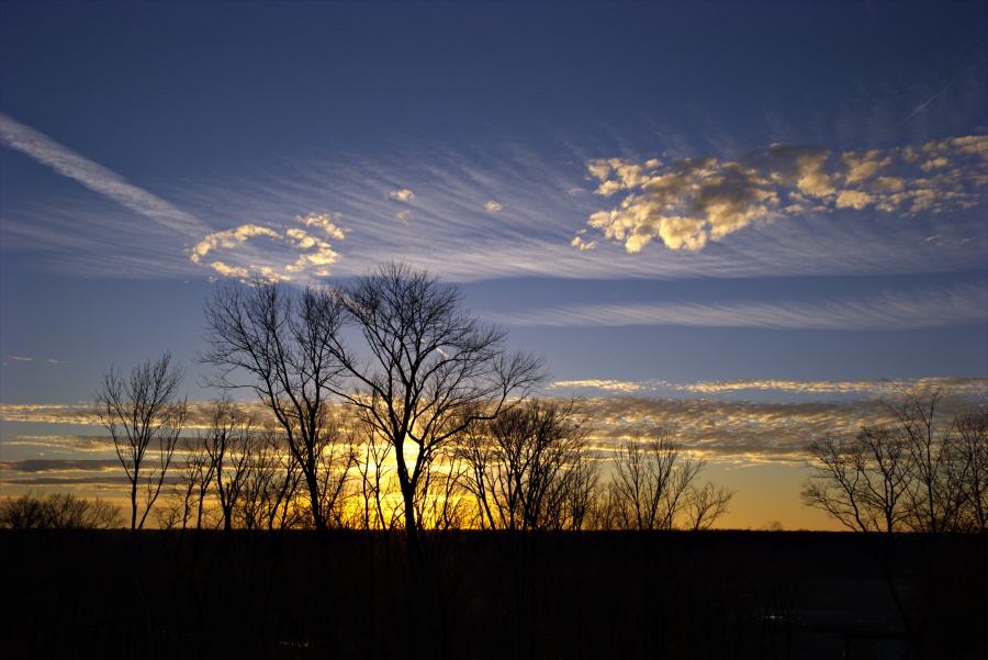 Beyond my little black deck there are old woods that lead down to Perche Creek. After leaves have fallen, I witness beautiful sunset colors that flow behind bare branches. It can be a spectacular sight, and I began to think about where in this small city I could find an expanse where I could practice photographing sunsets enhanced by other aspects of nature like clouds, trees, ponds.