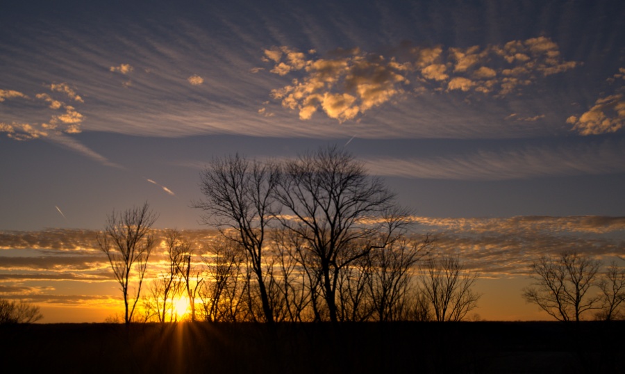 Lucky me. About half a mile from where I live there is a new housing development on the very west side of town: Breckenridge Park. Beyond the development to the west, the land slopes down to Perche Creek and farmland. Bingo. A great place to practice photographing sunsets.