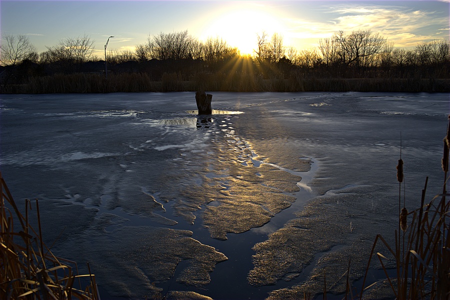 Eventually, the temperatures warmed up a bit and ponds in the area lost their iced armor. I took my camera over to Louisville Dr. Park at sunset to see what I could capture. It was interesting to see how the light changed.