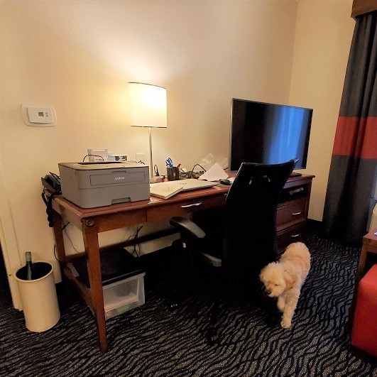 Overall, the stay at the hotel has been nice, but I am restless to move on and begin making my new nest. That said, Cinnamon and I do have many comforts of home here and then some.